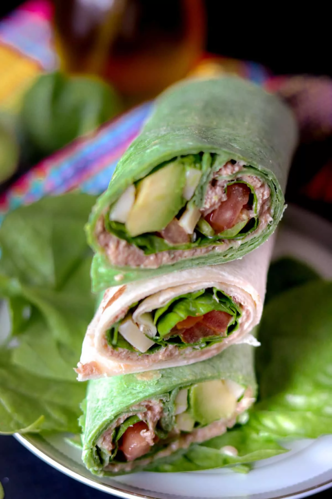 14. Spinach Tuna Salad Wrap: I love this wrap because it all all different kinds of tasty veggies. Not to mention the wrap is made from spinach!