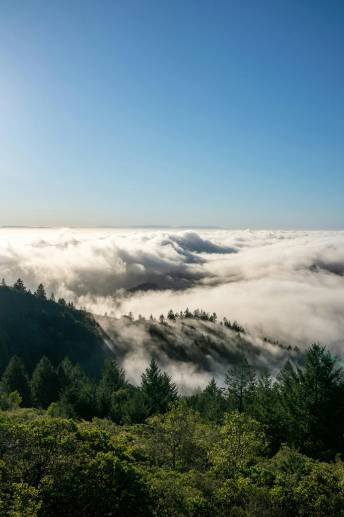 Nestled in Marin County, north of the Golden Gate Bridge, Mount Tamalpais (affectionately called “Mt. Tam” by locals) has a peak elevation of 2,571 feet. Drive over the Golden Gate Bridge, and you’ll find this amazing park with beautiful views, lots of green grass, and cool forests. There are lots of hills and trails for hiking too. If you are in the mood for hiking and scenery mt. tam is a perfect day trip from the bay area.