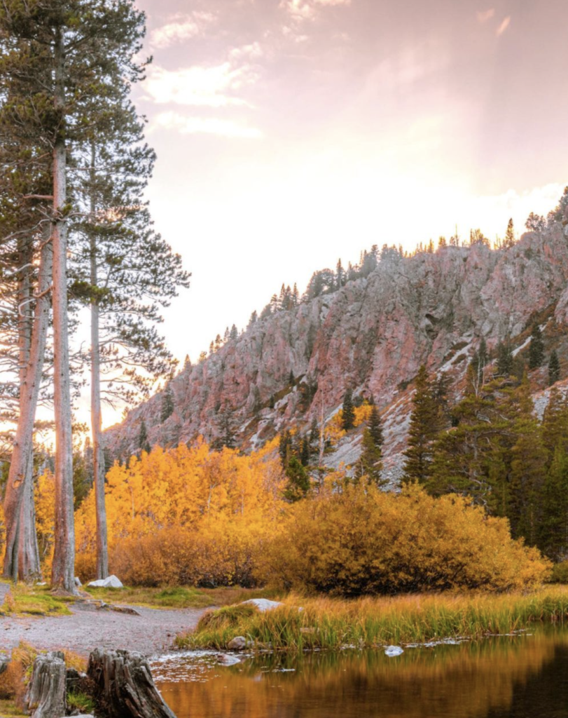 The June Lake Loop, or as locals call it “the little Switzerland” a scenic 16-mile drive, is a must-do for anyone seeking the best fall colors in the Eastern Sierra. This picturesque lake is surrounded by towering pines and aspens, which turn a fiery red during fall.