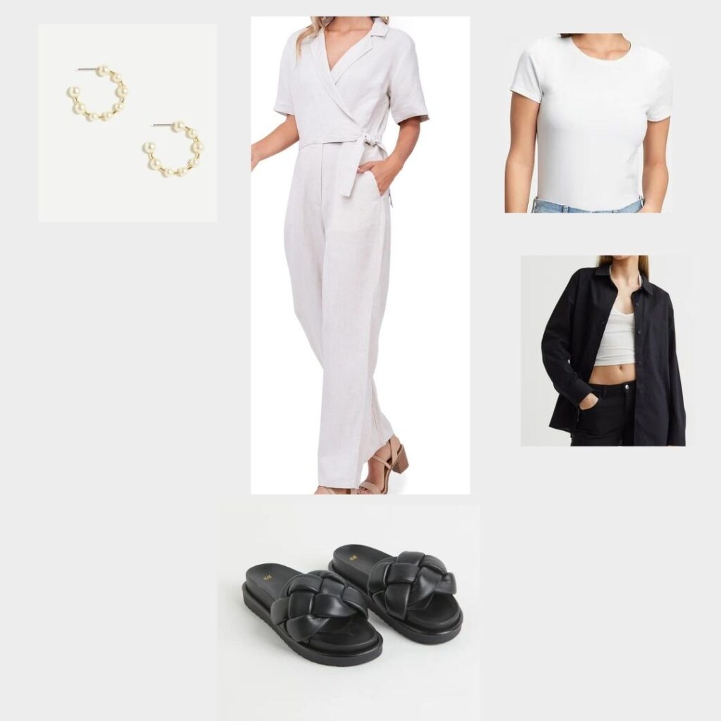 I feel like every girl just needs a modest jumpsuit in their closet. They are so effortless and classy and comfortable. For more coverage tie a blouse around your waist for more coverage. It’s a basic put together outfit but not too overdressed.