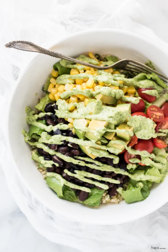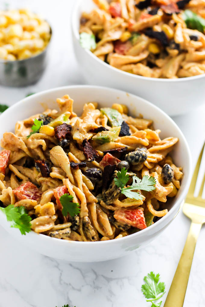 2.Vegan Mexican Pasta Salad with Spicy Cashew Cream