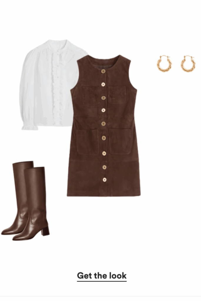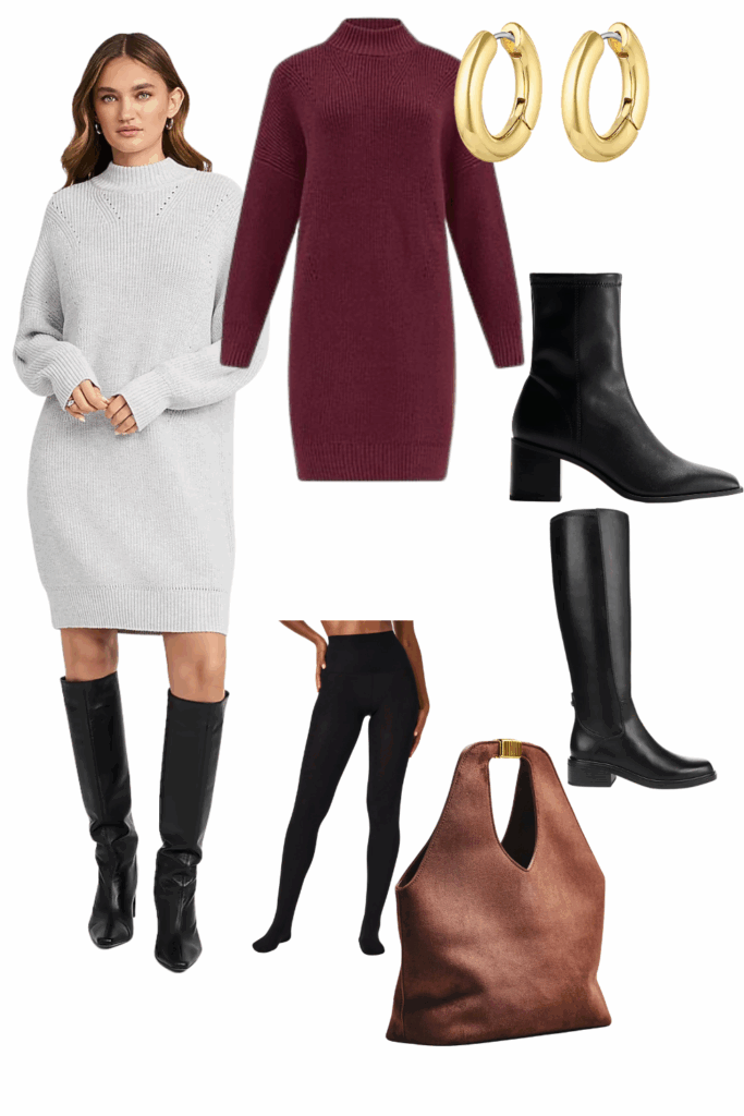 The sweater dress is a Thanksgiving classic — soft, warm, and effortless. Pair with tights and ankle boots for a look that’s polished without feeling restricted.
