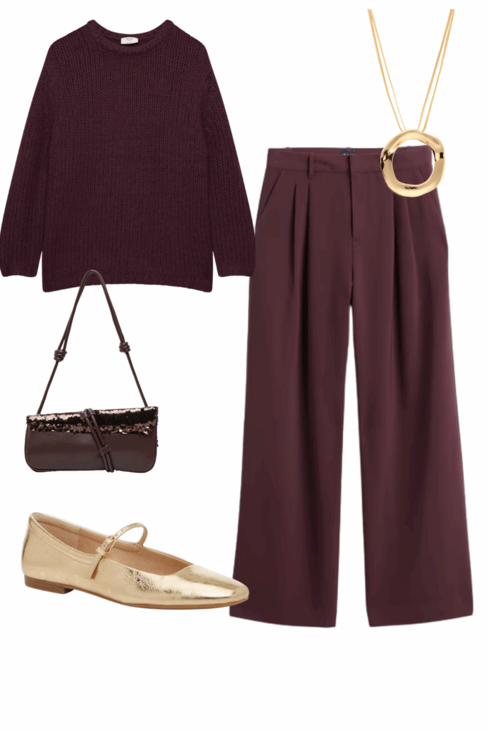 Not sure what to throw on for Thanksgiving? Here’s my go-to shortcut: a head-to-toe monochromatic outfit. It magically looks intentional and elevated, even if you picked your pieces in a sleepy panic an hour before dinner. This rich plum shade takes things up a notch, and matching accessories pull the whole look together effortlessly.