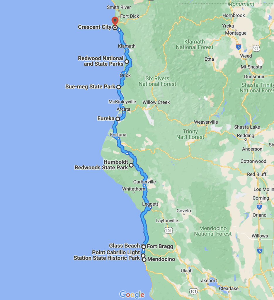 Mendocino to Crescent City Road Trip Logistics