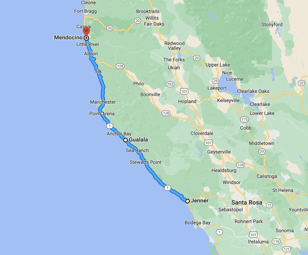 From Mendocino you will continue to head north towards Fort Bragg, a city 20 minutes from Mendocino. It is known for the famous Glass Beach, Mendocino Coast Botanical Gardens and so much more.