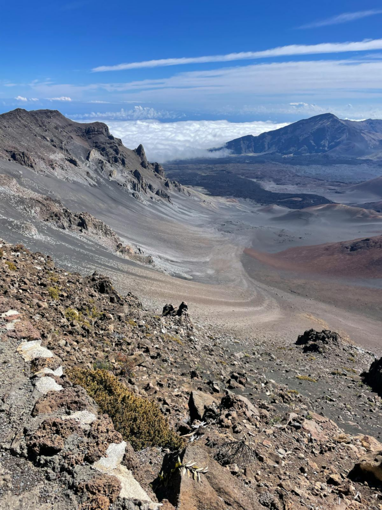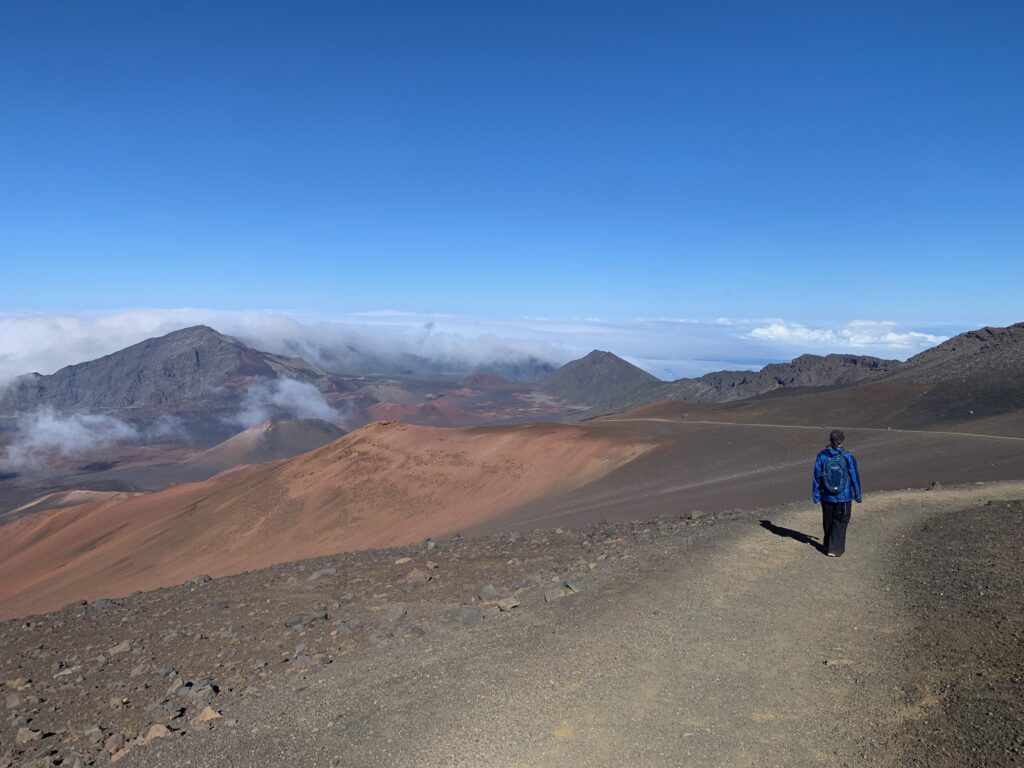 One lesson we learned firsthand: Haleakalā’s summit, towering at 10,000 feet, plays by its own rules when it comes to clouds. We saw it all on our Sliding Sands hike – from delicate cloud accents to a complete cloud immersion. It’s impossible to predict when the summit will be clear, despite checking the forecast. So, go with an open mind. If you encounter clouds, embrace the ethereal atmosphere; it’s a wild and beautiful part of the adventure.