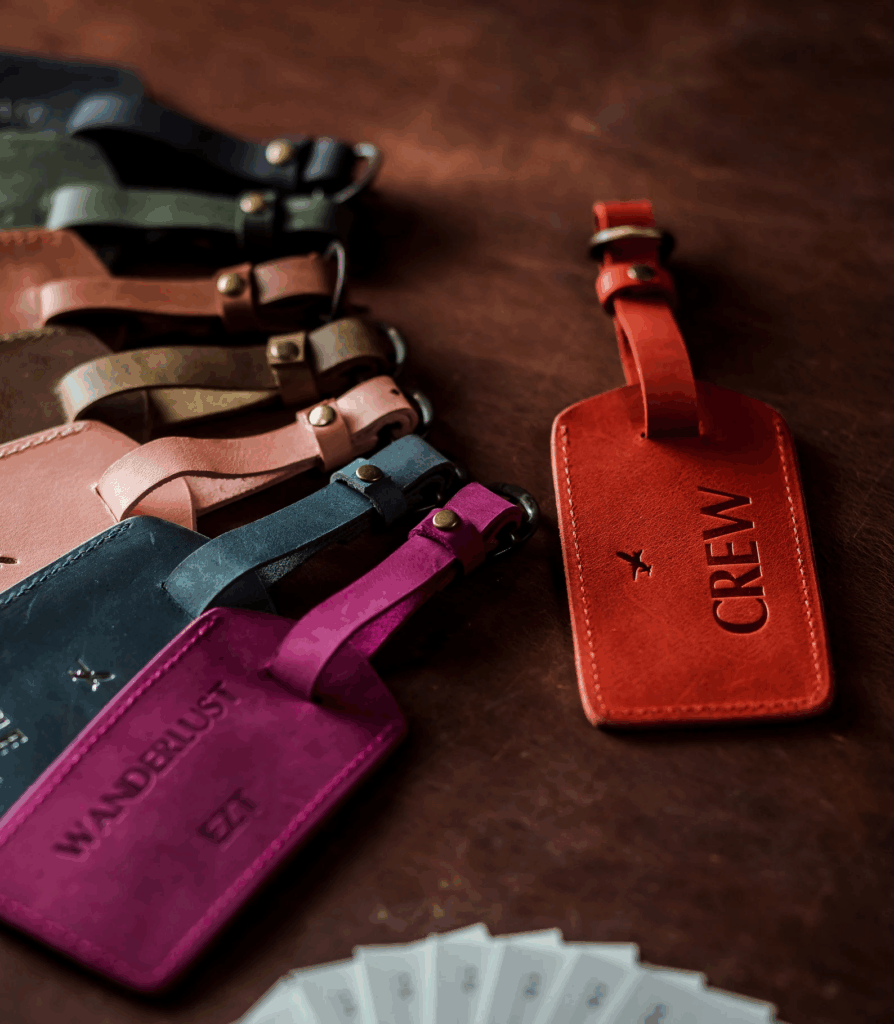 12. Customized Leather Luggage Tag: Elevates their baggage game and makes it easy to spot.