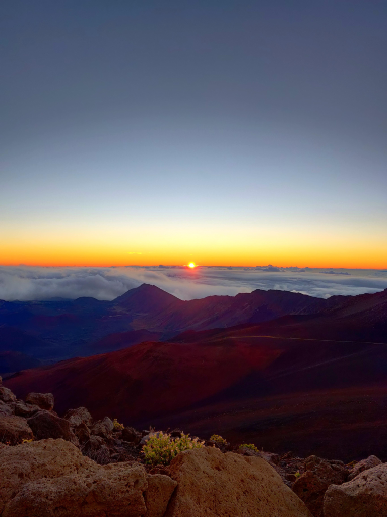 Watching the sunrise or sunset on the summit of Haleakala is an amazing experience. I preferred going at sunset and I loved it. To go at sunrise , a reservation is required for sunrise and in normal times they sell out the instant they go on sale 60 days in advance. You also have to wake up at 2-3 am to make it to the summit by sunrise.