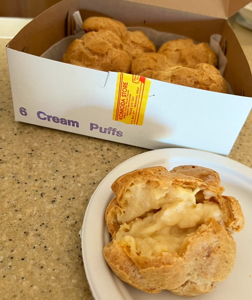–Komoda Bakery. NO trip to Maui would be complete without a trip to Komoda bakery. The cream puffs have custard inside – LOTS of custard.