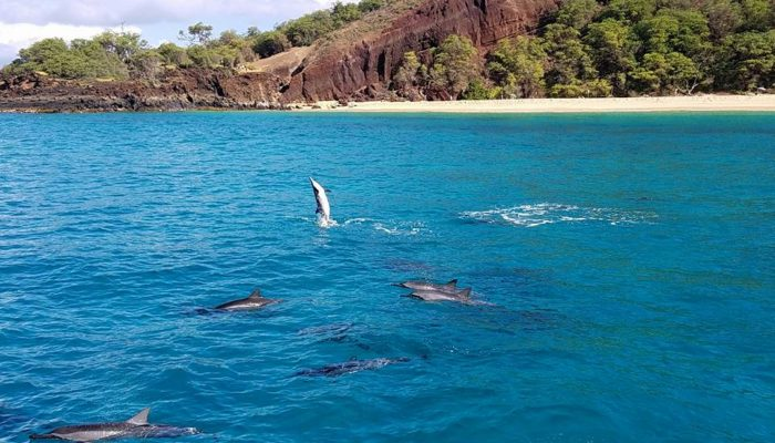 La Perouse Bay  is a great place to see dolphins if you can be an early riser. Be at the beach around dawn and soon after the dolphins come into play. You can snorkel here as well and get lucky to be surrounded by dolphins. If you’re lucky enough to be out you can hear them in the water. There are also super beautiful hiking trails in the area as well that you can do afterwards.