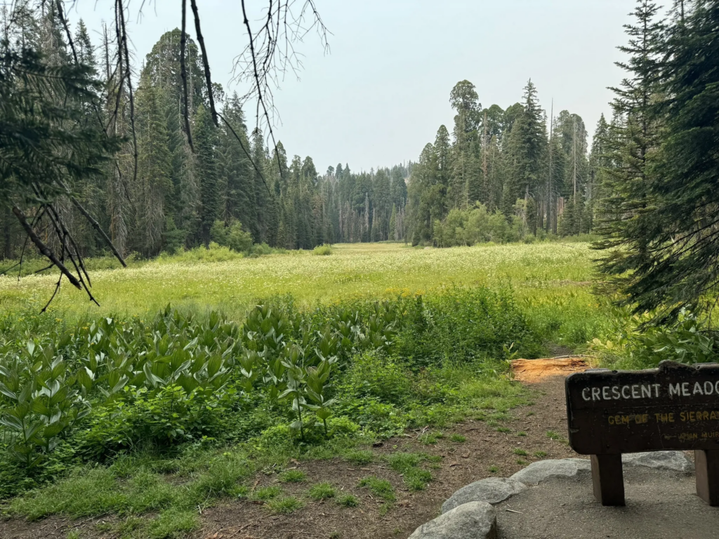 Crescent Meadow is a beautiful meadow surrounded by giant sequoias. It feels like you are walking into some sort of green screen. It is so serene and peaceful and while it may be crowded, there are spaces to just veer off and have some time to yourself.