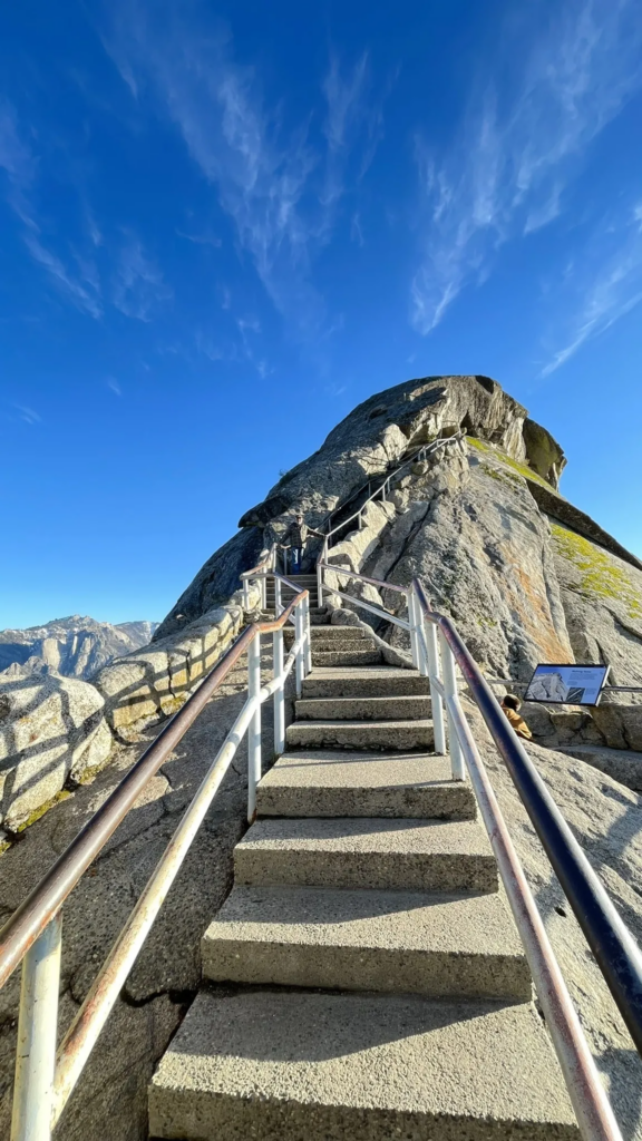 The grand finale of Day 1 is sunset. Moro Rock offers panoramic views of the surrounding landscape, including the Great Western Divide. While it is just a 0.4 mile trail, you will feel it. The climb up is 400+ steps and it can be strenuous for some. But the views make it all worth it.