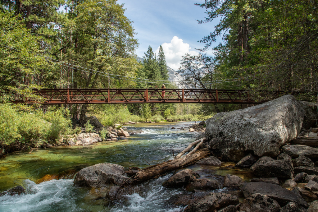 Continue along the scenic byway to Zumwalt Meadow. This beautiful, flat meadow is accessed by hiking a half mile trail that takes you over an impressive suspension bridge.