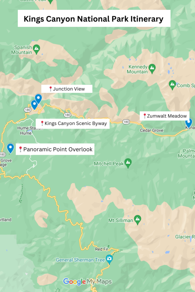 Sequoia NP and Kings Canyon NP are kind of a two-in-one National Park. Your daily entrance fee covers both, and there is a beautiful scenic road between the two – Kings Canyon Scenic Byway.