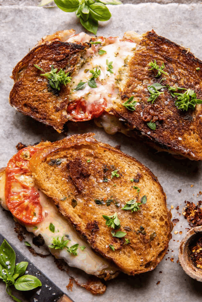 Roasted Garlic Caprese Grilled Cheese