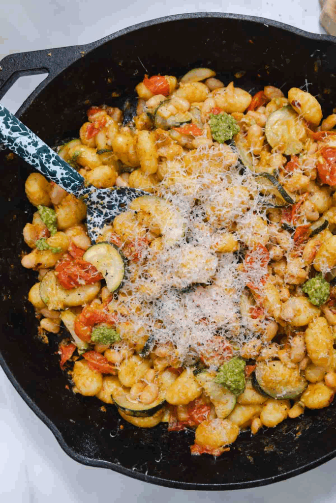 Pan-fried gnocchi gets a fresh twist in this quick, 20-minute recipe, tossed with cherry tomatoes, zucchini, and a bright, light pesto sauce with lemon. Perfect for easy weeknight dinners, this one-skillet dish is ready in minutes and ideal for spring and summer meals.
